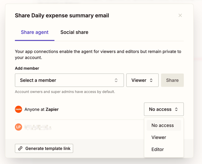 In Zapier Agents, you can invite members of your Zapier account to collaborate on and use agents.