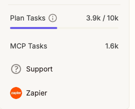 Tasks used are taken from the Zapier tasks available on your plan. You can see the current usage in your Zapier MCP dashboard's left sidebar.
