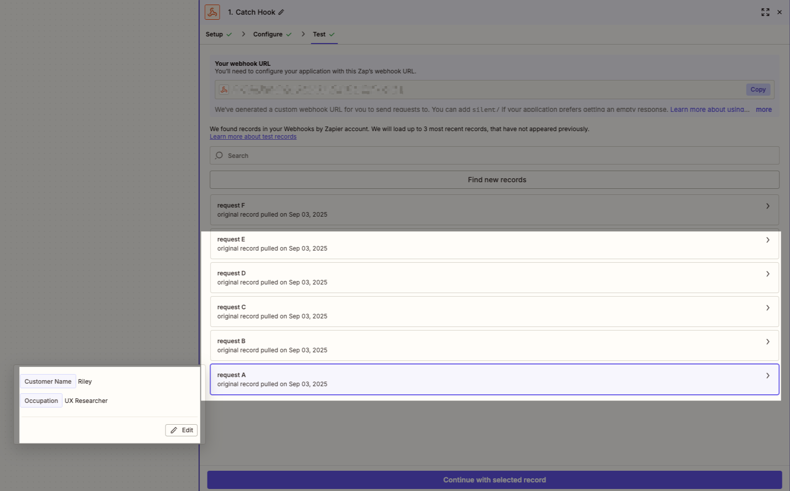 - Create your Zap and configure your webhook URL but don't enable your Zap quite yet!