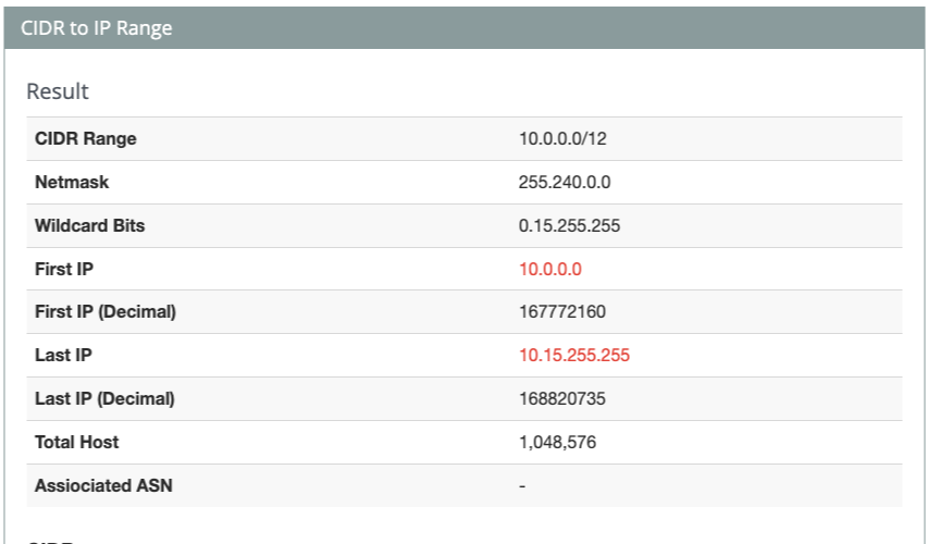 - The results will give you the First IP and Last IP. The number of IPs in the range will be in the Total Host field.